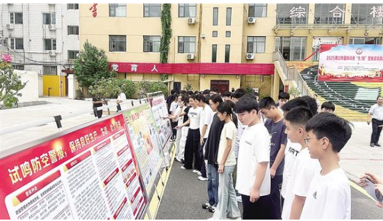 “國(guó)防動(dòng)員九一八警報(bào)試?guó)Q疏散演練,現(xiàn)在開(kāi)始!”9月15日9時(shí)30分,周口市第十九初級(jí)中學(xué)校園內(nèi),隨著指揮長(zhǎng)的指令下達(dá),“嗚——”的防空警報(bào)聲驟然劃破晴空。