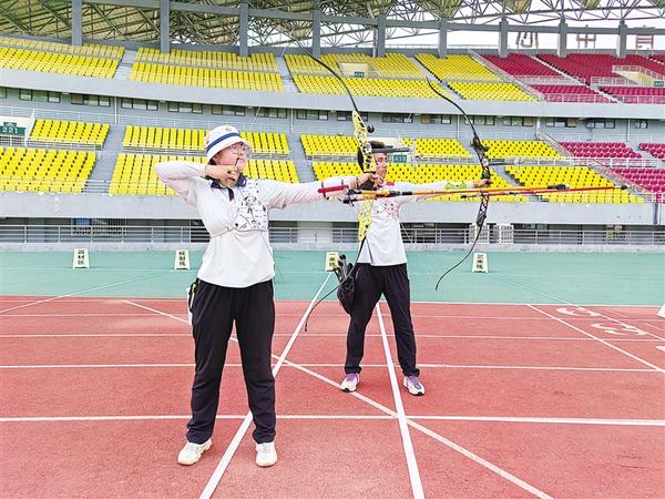 4月22日下午,鄭州代表隊(duì)隊(duì)員白向彤、宋雨航在比賽中。當(dāng)天,“奔跑吧·少年”2024年河南省青少年射箭冠軍賽在周口市體育中心圓滿收官。
