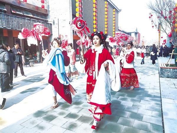 翠袖紅裙、直襟長(zhǎng)袍……身著漢服的演員,手持魚(yú)燈,巡游關(guān)帝老街,伴隨著樂(lè)曲翩翩起舞,成為一道靚麗的風(fēng)景線(xiàn)。[詳細(xì)]