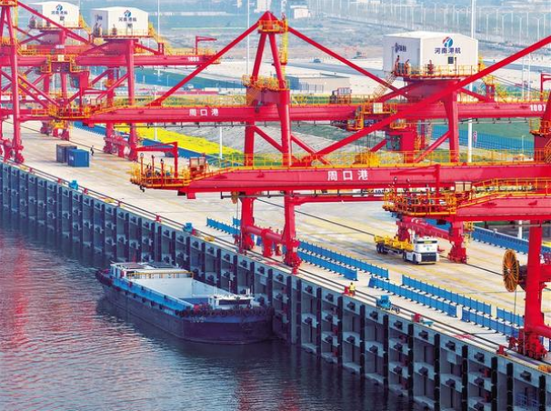 這是3月31日拍攝的周口港中心港區(qū)中心作業(yè)區(qū)碼頭(無人機照片)。 作為全國36個內(nèi)河主要港口之一,河南周口港近年來不斷拓展對外開放格局,深度融入國際國內(nèi)港口群。