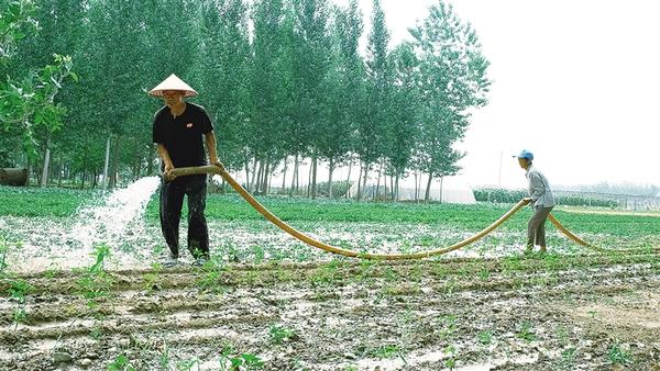 前幾天,受持續(xù)高溫天氣影響,西華一些農(nóng)田出現(xiàn)干旱,為確保秋作物正常生長,農(nóng)戶積極抗旱。圖為農(nóng)戶為辣椒苗補充水分。