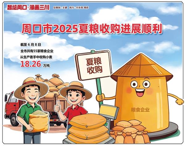 夏收期間,周口市多措并舉保障糧食收購工作。全市統(tǒng)籌30個政策性收儲庫點(diǎn),為夏糧收購騰出14.8億斤倉容;利用市、縣、鄉(xiāng)、村四級儲備糧輪換機(jī)制,新增6億斤倉容。