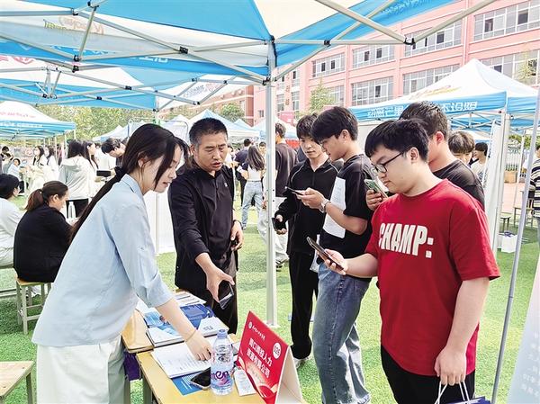 用人單位代表向求職學(xué)生介紹企業(yè)情況。5月15日,周口理工職業(yè)學(xué)院舉辦2025屆畢業(yè)生“雙選會”?;顒又?,求職學(xué)生積極與用人單位代表溝通交流、提交個人簡歷。用人單位代表耐心解答疑問,介紹公司發(fā)展前景、崗位需求及福利待遇等情況,積極招攬優(yōu)秀人才。