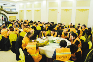 本報訊 (記者 徐啟峰 通訊員 劉巍 文/圖) 2月17日,農(nóng)歷臘月二十九上午,愛心人士韓平為川匯區(qū)環(huán)衛(wèi)工人送去棉大衣,并邀請環(huán)衛(wèi)工人共進(jìn)午餐(如圖)。