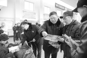 3月6日,“關(guān)愛農(nóng)民工法治宣傳周”集中宣傳活動(dòng)在周口客運(yùn)中心站門前舉行,相關(guān)單位設(shè)立咨詢服務(wù)臺(tái),發(fā)放宣傳資料,回答群眾咨詢。記者 王映 攝