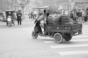 圖③ 在八一大道與七一路交叉口,一輛三輪車無(wú)視紅綠燈橫沖直闖。