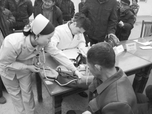 昨日,周口經(jīng)濟(jì)開發(fā)區(qū)組織醫(yī)務(wù)人員為轄區(qū)內(nèi)的五保戶義診。為讓轄區(qū)內(nèi)的五保戶感受到大家庭的溫暖,該區(qū)通過(guò)定期開展系列看望慰問(wèn)活動(dòng)為老人送去愛心和關(guān)懷。 (記者 沈湛 攝)