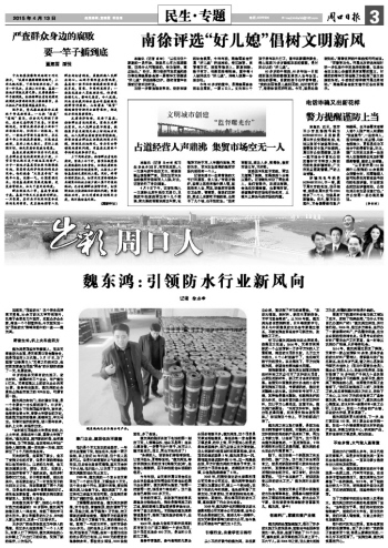 42歲的他在天津有防水施工、防水材料、保溫材料三個企業(yè),年產(chǎn)值達5億元。天津規(guī)模以上的防水企業(yè)約有20家,競爭相當激烈,魏東鴻的業(yè)務(wù)量能占到全市施工的20%左右,可謂首屈一指。