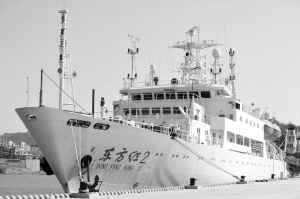 “東方紅2號(hào)”海洋綜合調(diào)查船赴南海進(jìn)行科學(xué)考察 5月10日,“東方紅2號(hào)”調(diào)查船在國(guó)家海洋局青島海洋科學(xué)考察基地碼頭整裝待發(fā)。當(dāng)日,“東方紅2號(hào)”海洋綜合調(diào)查船從國(guó)家海洋局青島海洋科學(xué)考察基地啟航,赴南海進(jìn)行為期兩個(gè)月的科學(xué)考察。新華社記者 張建松 攝