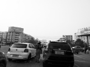 圖① 市區(qū)多個(gè)路口都存在攔車(chē)行乞現(xiàn)象,既不文明又不安全。