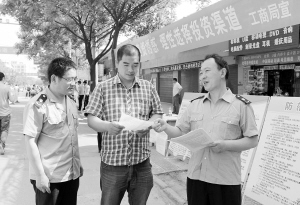 5月16日上午,扶溝縣工商人員向過往市民講解非法集資的危害。當日,該縣處置非法集資領導組在縣城桐丘路舉辦打擊非法集資現(xiàn)場宣傳教育活動,各參加單位通過發(fā)放資料、現(xiàn)場咨詢等形式告知廣大市民拒絕參與非法集資。盧付昌 攝