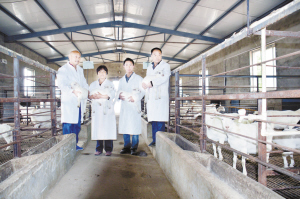 孫振偉原是當(dāng)?shù)刂那嗄昶髽I(yè)家,2008年初被西關(guān)村居民高票選舉為村黨支部書記,憑著對家鄉(xiāng)的強烈責(zé)任感和保護槐山羊特色品種的使命感,孫振偉帶領(lǐng)西關(guān)村立足本村作為槐山羊傳統(tǒng)養(yǎng)殖區(qū)的優(yōu)勢,于2010年成立沈丘縣槐山羊養(yǎng)殖發(fā)展有限公司,在省畜牧展交易會上,與鄭州鄭源公司合作,共同簽約了投資6000萬元建設(shè)槐山羊原種保護、繁育、深加工項目。同時與華中農(nóng)大建立技術(shù)合作關(guān)系,投資800萬元建成“槐山羊原種保護和繁育中心”,規(guī)劃設(shè)計了化驗室、消毒室、提純復(fù)壯室、品種基因室等配套規(guī)范設(shè)施,不僅為國家級優(yōu)良品種槐山羊的保種提純工作提供了科研平臺和寶貴數(shù)據(jù)庫,“槐山羊提純復(fù)壯良種繁育技術(shù)研究與應(yīng)用”成果還獲得2013年度周口市科技進步一等獎。經(jīng)過提純復(fù)壯,目前中心存欄特征明顯的槐山羊母羊860只、種公羊36只,在此基礎(chǔ)上,計劃建成占地100畝的槐山羊養(yǎng)殖小區(qū),槐山羊板皮、肉制品等深加工項目都已經(jīng)開始實施。 “這些是經(jīng)過第五輪提純復(fù)壯繁育的槐山羊,目前可以說是最純種的槐山羊了?!睂O振偉指著一批剛出生的小羊向我們介紹。