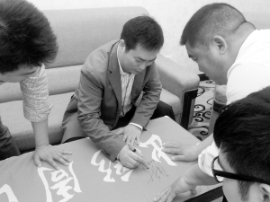張新在“出彩周口人”采訪旗幟上簽名留念。