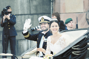 瑞典王子菲利普完婚      6月13日,在瑞典首都斯德哥爾摩,菲利普王子與索菲婭王妃在婚禮儀式后向民眾揮手致意。當(dāng)日,瑞典王子卡爾·菲利普與索菲婭·赫爾奎斯特在斯德哥爾摩老城的王室教堂完婚。新華社發(fā)