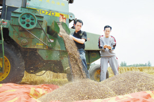 今年“三夏”,沈丘縣堅(jiān)持做到進(jìn)地作業(yè)機(jī)械全部安裝秸稈粉碎還田裝置,一律執(zhí)行“低留茬、細(xì)粉碎”作業(yè),對(duì)不符合作業(yè)要求的機(jī)械,及時(shí)制止并督促就地整改,達(dá)不到標(biāo)準(zhǔn)要求的地塊,責(zé)成村級(jí)組織破茬耕翻,確保秸稈粉碎還田質(zhì)量。圖為付井鎮(zhèn)境內(nèi)一輛安裝秸稈粉碎還田裝置的聯(lián)合收割機(jī)正在田間作業(yè)。(肖飛 攝)