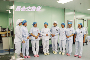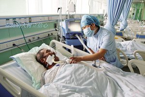 當(dāng)然,護(hù)理工作并非一帆風(fēng)順。眾所周知,ICU收治的都是重癥患者,患者大多數(shù)都有精神障礙,譫妄、昏迷、煩躁不安等狀況很常見(jiàn),這就需要護(hù)士們充滿耐心和愛(ài)心。張衛(wèi)華以實(shí)際行動(dòng)詮釋人間大愛(ài)。2014年8月,科室里來(lái)了一名Ⅱ級(jí)肝性腦病的男性患者,已經(jīng)精神錯(cuò)亂且不認(rèn)人,行為非常危險(xiǎn)。由于該病不能使用鎮(zhèn)靜藥物,當(dāng)責(zé)任護(hù)士靠近患者時(shí),患者拿起床頭柜上的一個(gè)玻璃瓶向護(hù)士砸去。作為護(hù)士長(zhǎng)的張衛(wèi)華見(jiàn)此情景,臨危不懼,用自己的身軀保護(hù)責(zé)任護(hù)士。只聽(tīng)見(jiàn)啪的一聲,鮮血順著她的臉頰流了下來(lái),可她還是慢慢走向那名患者,輕聲向他解釋情況以安撫其情緒。患者的情緒漸漸地穩(wěn)定下來(lái),她才去處理傷口,并輕松地說(shuō):“只要沒(méi)傷著病人就好。”有一次,科室里來(lái)了一名心梗住院的老人,老人的孩子都在外地,得知老人生病住院也沒(méi)趕回來(lái)照顧,甚至連一句問(wèn)候都沒(méi)有。老人除了要忍受著病痛的折磨,還要忍受對(duì)孩子們的思念。張衛(wèi)華見(jiàn)此情景,非常心疼,為安慰老人,上班期間她都會(huì)去陪老人聊天,哄老人開(kāi)心。老人吵著不舒服的時(shí)候,張衛(wèi)華用藥緩解,同時(shí)耐心安撫老人。晚上老人因?yàn)楹⒆拥氖虑椋瑫?huì)像一個(gè)小孩兒一樣哭泣不止,張衛(wèi)華心疼地陪在老人身邊,一遍又一遍地安慰說(shuō):“別害怕,我在您身邊,我就是您的女兒?!?/P>
