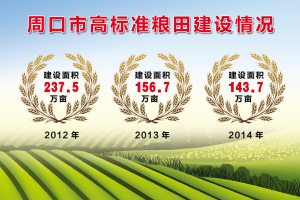 糧食生產(chǎn)之所以能夠在高起點(diǎn)上持續(xù)增產(chǎn),高標(biāo)準(zhǔn)糧田建設(shè)功不可沒(méi)。高標(biāo)準(zhǔn)糧田建設(shè)自2012年開始,我市共規(guī)劃高標(biāo)準(zhǔn)糧田面積900萬(wàn)畝(含鹿邑),計(jì)劃到2017年完成農(nóng)田基礎(chǔ)設(shè)施建設(shè),到2020年全部完成配套服務(wù)體系建設(shè),糧食綜合生產(chǎn)能力達(dá)到160億斤以上。截至2014年底,全市累計(jì)整合農(nóng)業(yè)項(xiàng)目資金59億多元,累計(jì)建成高標(biāo)準(zhǔn)糧田面積537.9萬(wàn)畝,占全市總規(guī)劃建設(shè)面積的59.8%。田成方、林成網(wǎng)、渠相通、路相連、旱可澆、澇能排的高標(biāo)準(zhǔn)糧田建設(shè)的大力實(shí)施,極大地提高了我市糧食綜合生產(chǎn)能力,把因干旱、澇災(zāi)、低溫凍害等各種自然災(zāi)害造成的損失降到了最低限度。