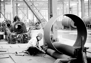 近年來,太康縣裝備制造園區(qū)被省工業(yè)和信息化廳評為特色裝備(工業(yè)鍋爐)制造園區(qū),成為中部地區(qū)最大的鍋爐壓力容器生產(chǎn)基地。全縣現(xiàn)有鍋爐壓力容器制造企業(yè)14家,其中A級鍋爐企業(yè)5家,年生產(chǎn)能力2.65萬蒸噸以上。圖為該縣四通鍋爐廠生產(chǎn)車間一角。(記者 沈湛 攝)