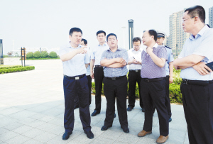 本報訊 (記者 李鳳霞)7月14日,市委書記、市人大常委會主任徐光輕車簡從,帶領(lǐng)市住建局、市交通局、市規(guī)劃局、市城管局、市開發(fā)區(qū)、市東新區(qū)、周口港區(qū)主要負(fù)責(zé)同志,冒著酷暑,深入中心城區(qū)部分重點項目建設(shè)工地實地調(diào)研,現(xiàn)場解決問題。徐光強調(diào),各級各部門要牢固樹立發(fā)展意識,堅持產(chǎn)業(yè)為基、就業(yè)為本,以產(chǎn)興城、產(chǎn)城互動,做大做強中心城區(qū)。