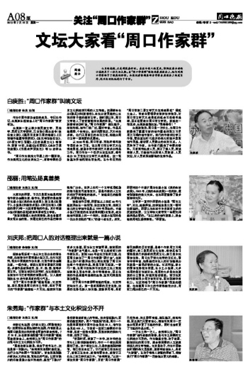 對(duì)于周口作家異軍突起的現(xiàn)象,劉慶邦歸納為三點(diǎn):第一是有深厚的歷史優(yōu)勢(shì),這里的優(yōu)勢(shì)包括人祖伏羲、道教李耳等,具有得天獨(dú)厚的歷史資源,是每個(gè)作家用之不竭的題材;第二是民間文化優(yōu)勢(shì),每種風(fēng)俗習(xí)慣都是我們所獨(dú)有的民間文化;第三是本地語(yǔ)言優(yōu)勢(shì),周口處于南北地帶的交匯處,語(yǔ)言非常豐富,如果能把本地人的對(duì)話整理出來(lái)就是一篇很好看的小說(shuō)。劉慶邦說(shuō),家鄉(xiāng)的語(yǔ)言優(yōu)勢(shì)較為明顯,在鄉(xiāng)土小說(shuō)里,大多采用的是對(duì)話或?qū)Π?,使用的大多是地地道道的鄉(xiāng)土語(yǔ)言,聽(tīng)起來(lái)親切自然。南方地區(qū)的作家卻很少用方言來(lái)對(duì)話,因?yàn)槟菢臃浅3粤?。劉慶邦寄予“周口作家群”很高的期望,他希望周口本土的作家都能走出去,用實(shí)力闖出自己的一片天地。